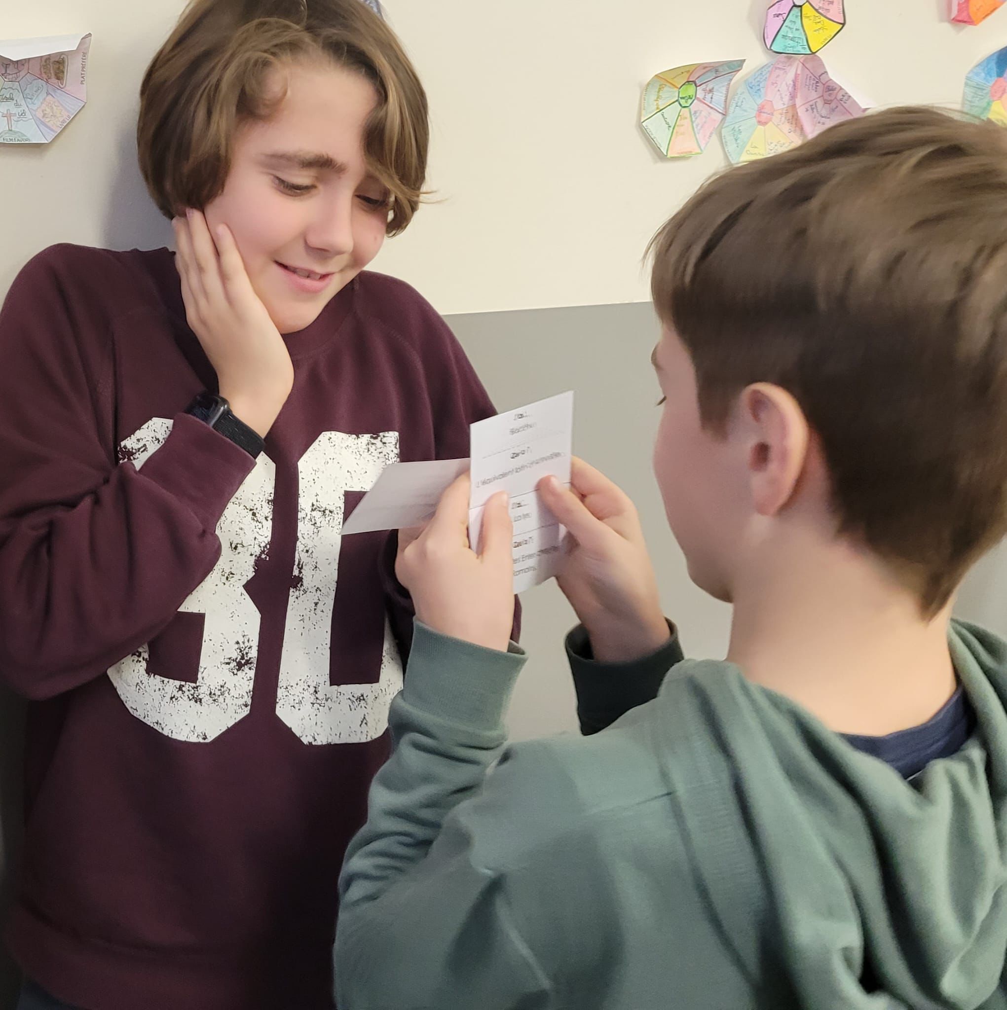 Pendant leur dernier cours, les 5èmes latinistes ont profité d'un moment ludique pour réviser les cas en latin avec le jeu du domino.