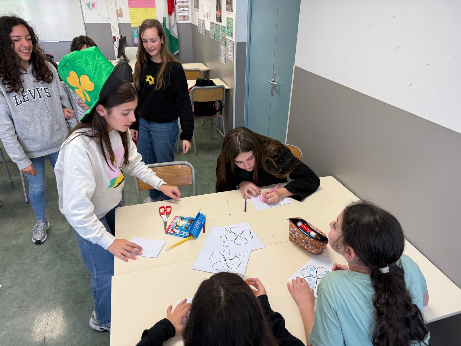 Les élèves du club jeux en anglais ont organisé un escape game sur la Saint Patrick dans tout l’établissement. Pendant la pause méridienne, les élèves volontaires ont joué, dansé et décoré des trèfles. Un beau moment de partage.