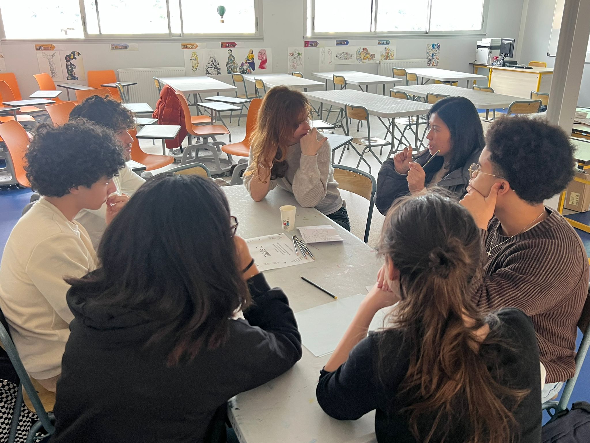 Après le Festival 1000 Raisons de Croire, intervention de l’artiste Anne-Laure Lavagna auprès des 6èmes, pour participer au concours scolaire artistique « Dessine-moi ta raison de croire… ».Qu’est ce qui les amène à croire : une personne ? un évènement ? une phrase/un mot ?