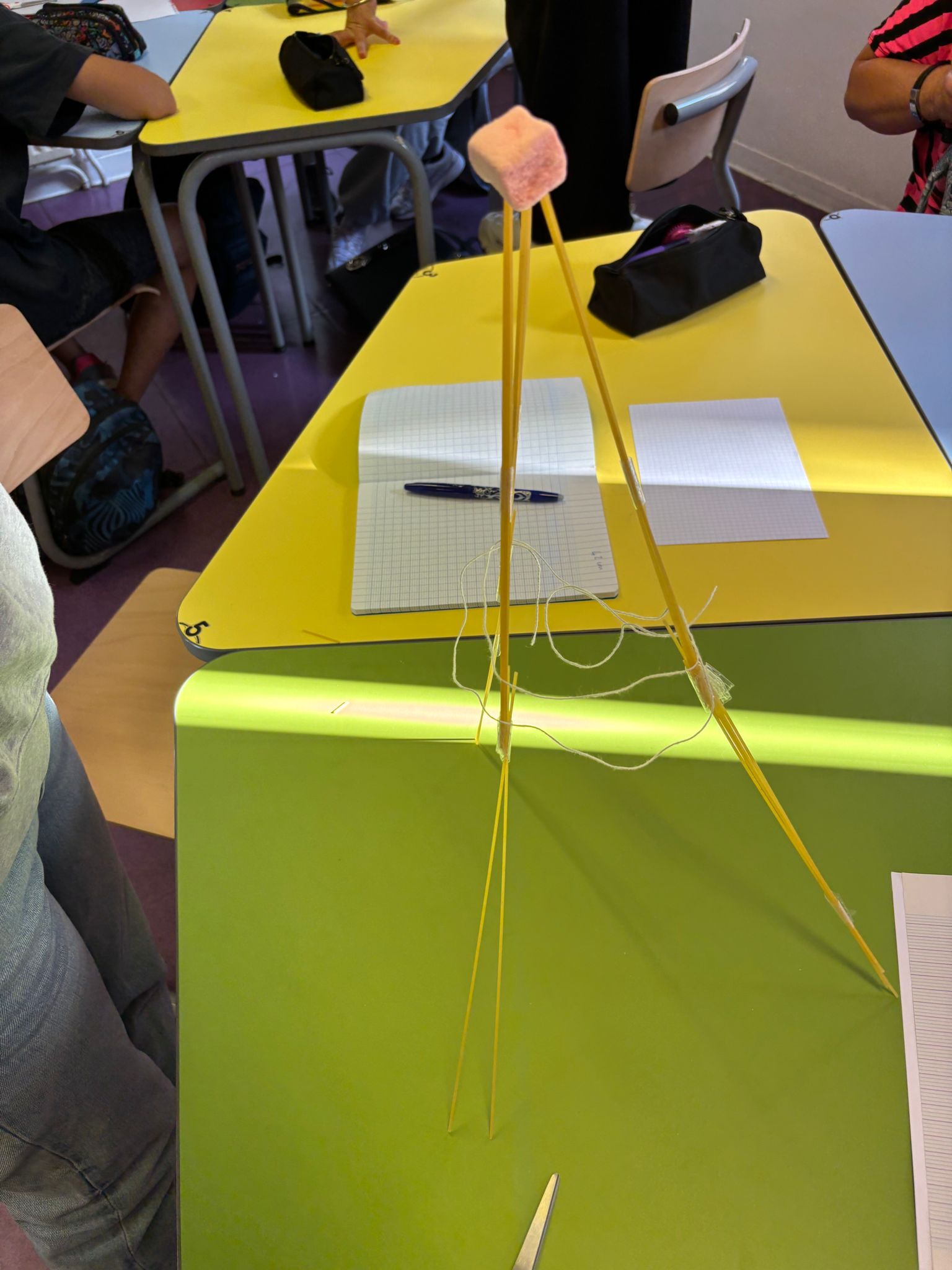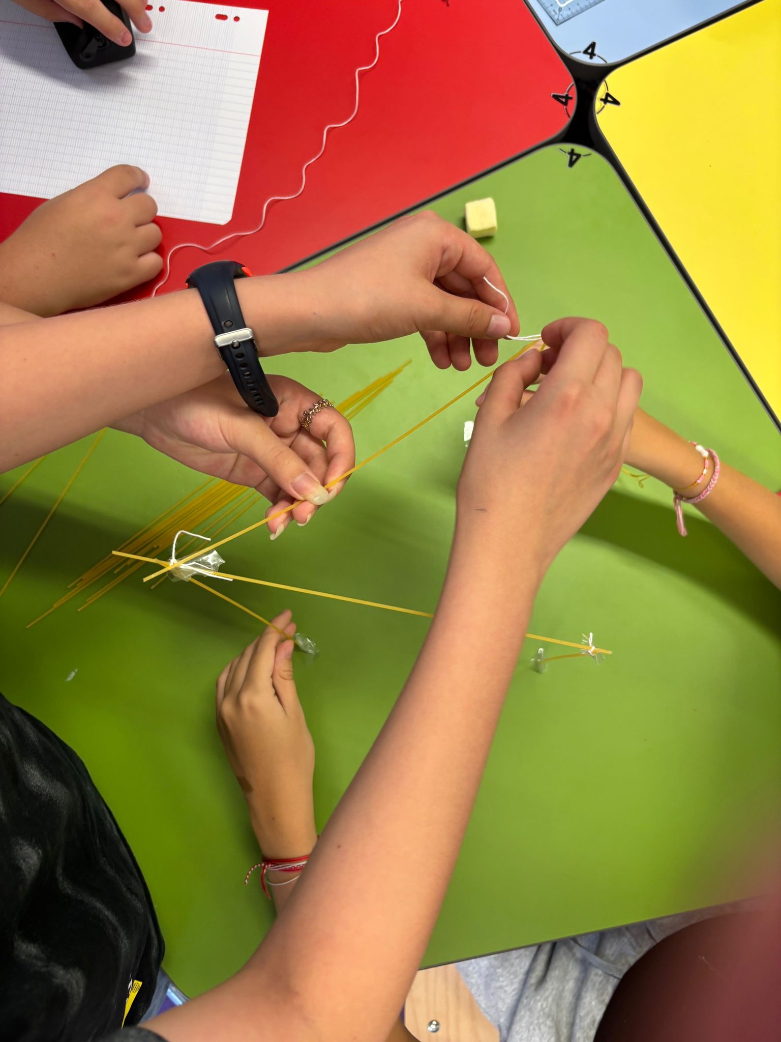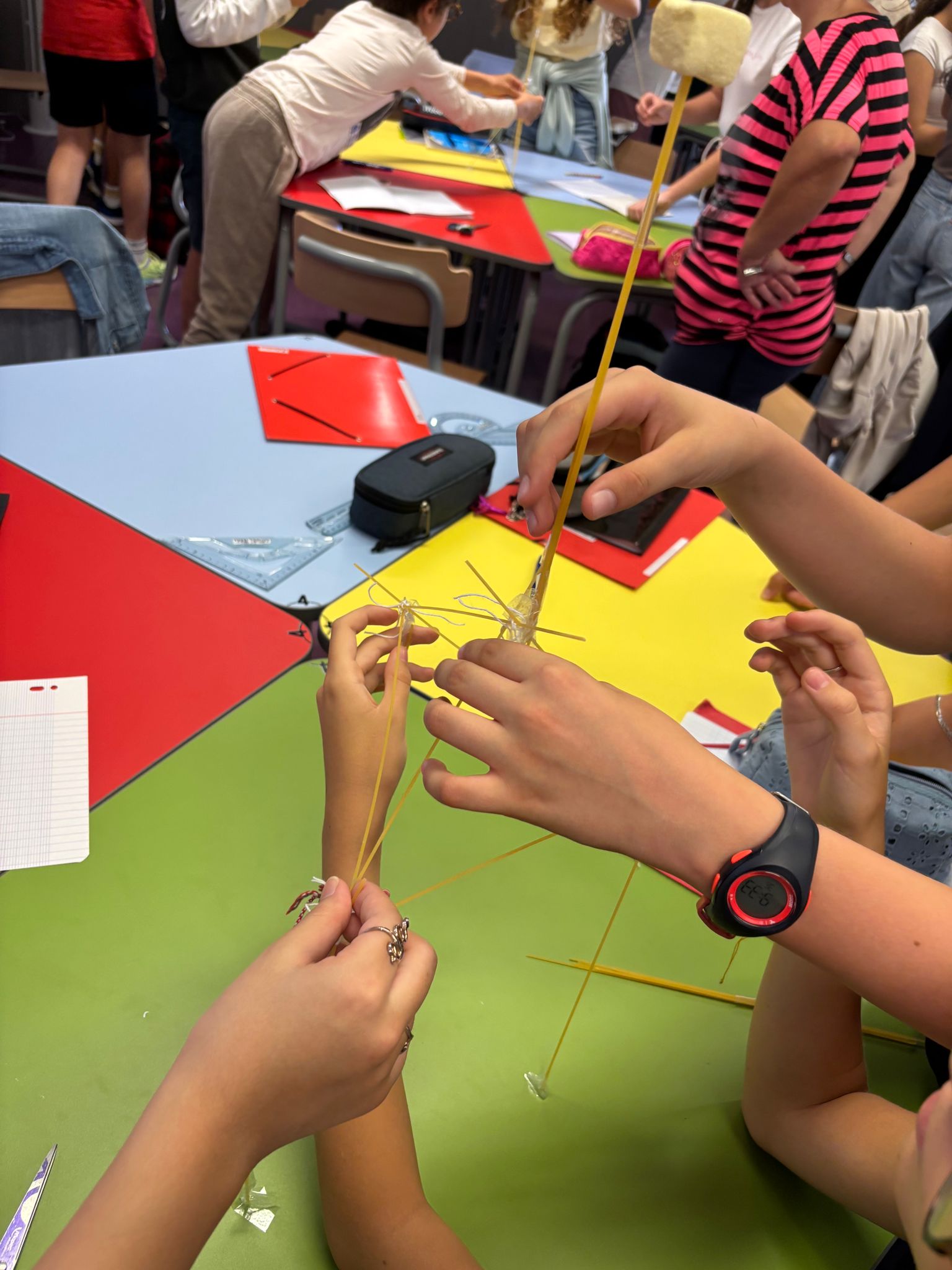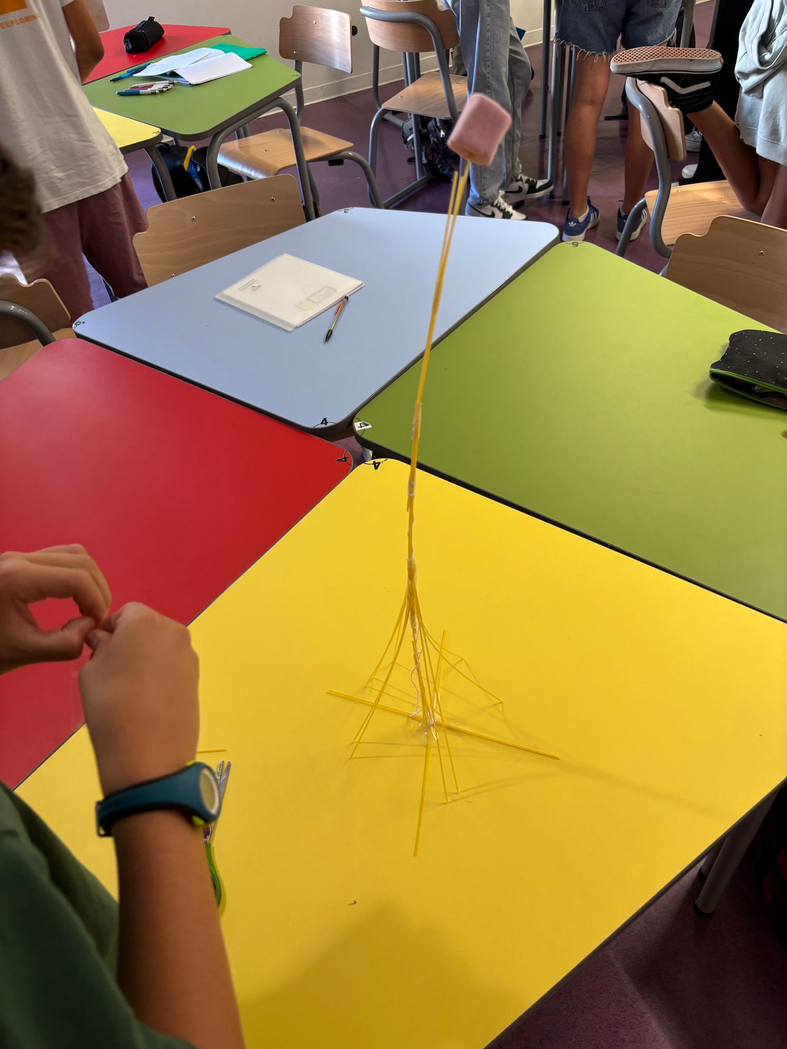 Les 4eA se sont lancés dans un défi original : construire la tour de spaghetti la plus haute possible avec 20 spaghettis, un peu de scotch, de la ficelle… et un chamallow au sommet.