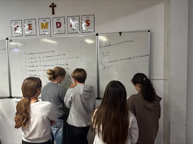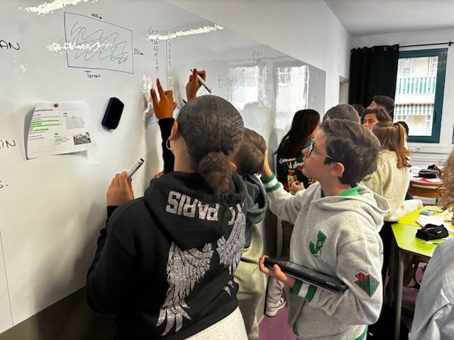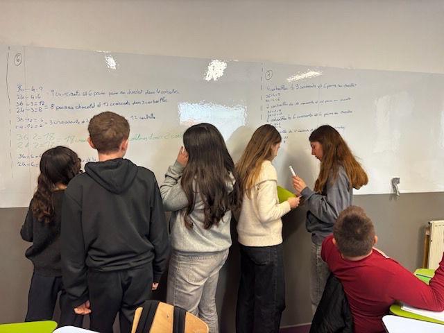 Ils travaillent en groupes autour de tableaux, échangent, s’expliquent, questionnent leurs choix et construisent ensemble leurs stratégies.
