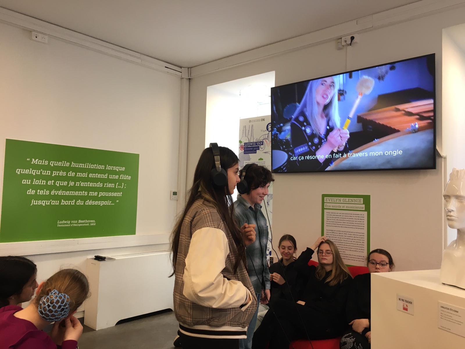 Dans le cadre du cours de musique, les élèves de troisième sont allés aux microfolies de Nice pour voir l’exposition Ludwig Van. Ils ont pu assister à trois ateliers sur l’écoute : l’écoute sociale, l’écoute de soi et les mécanismes de l’écoute.