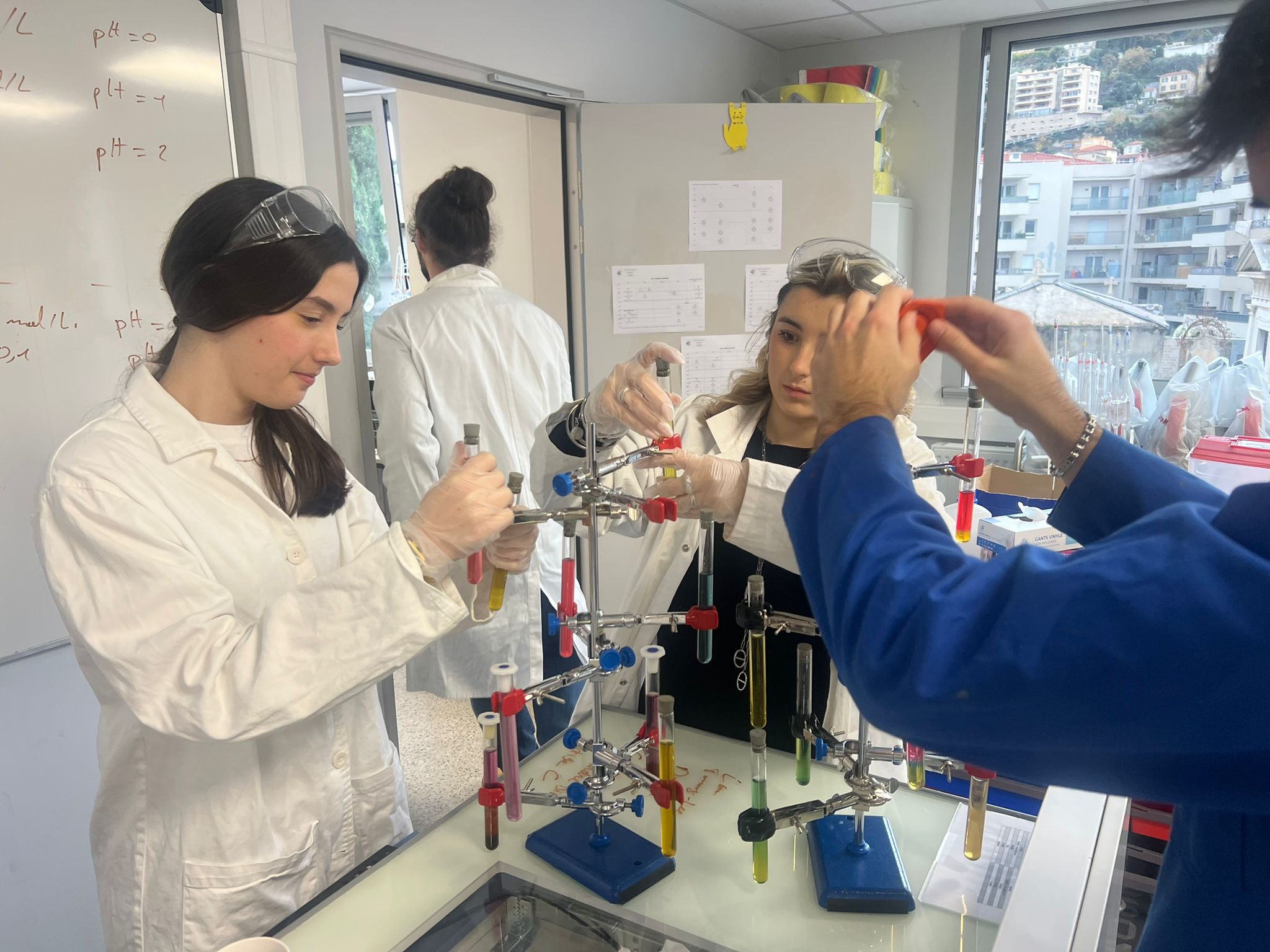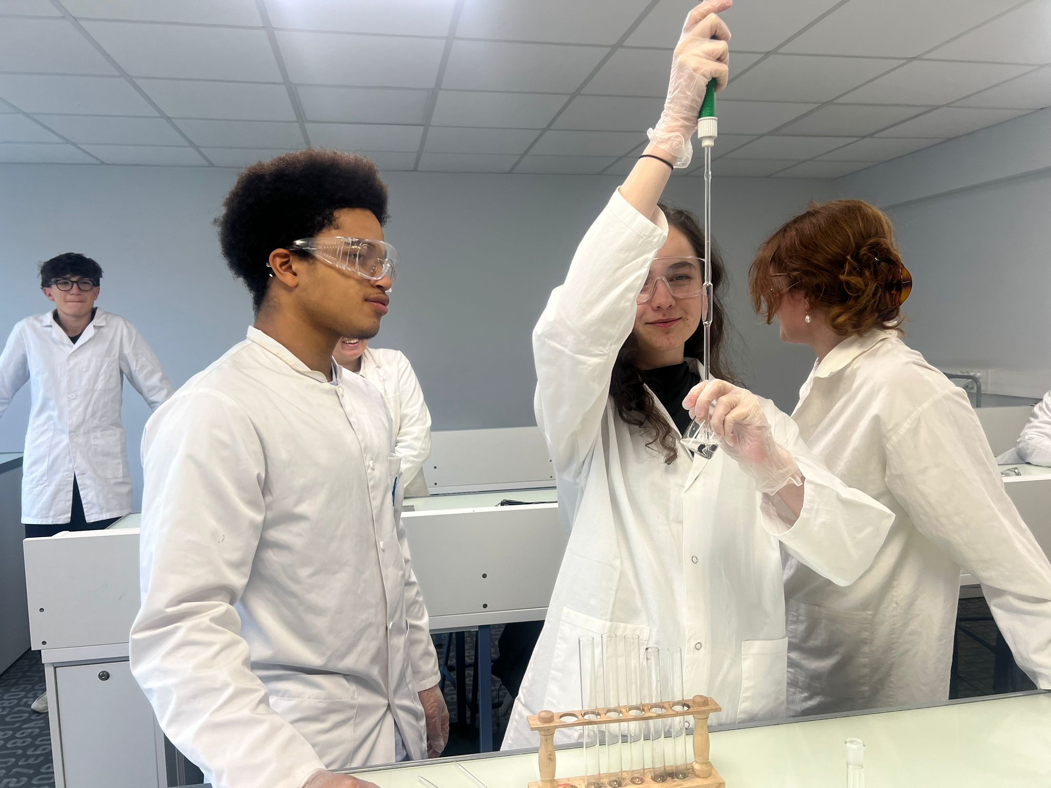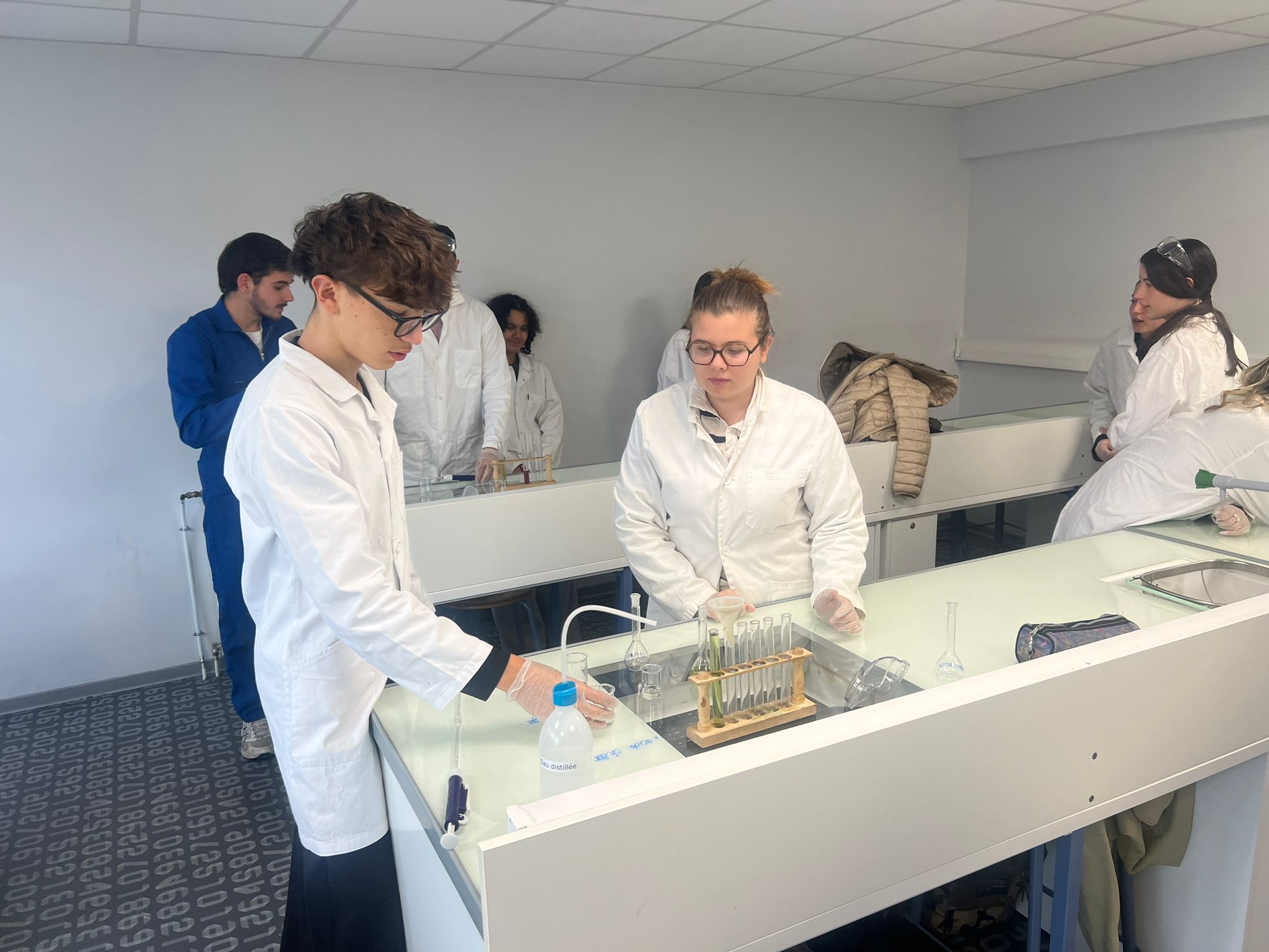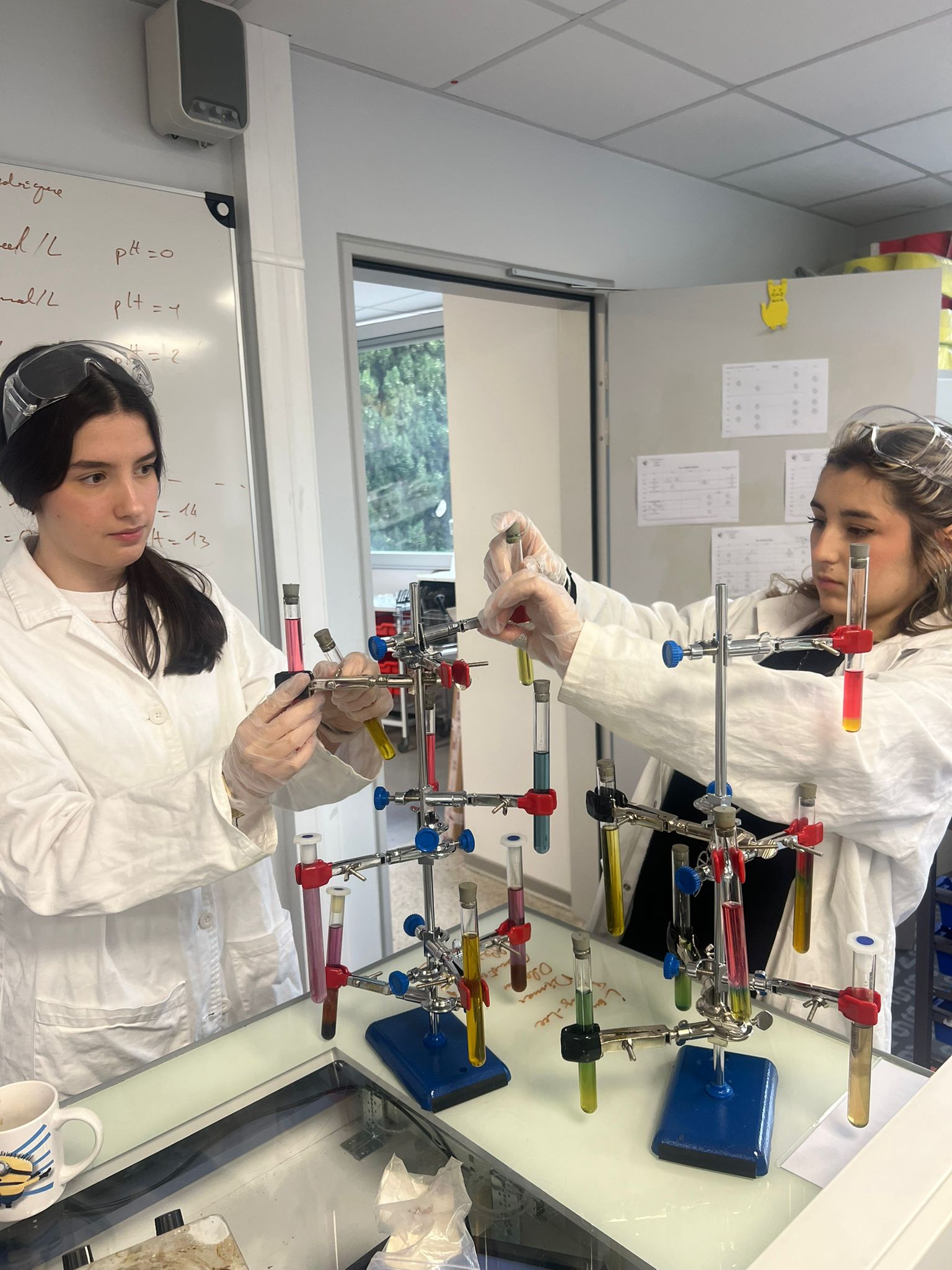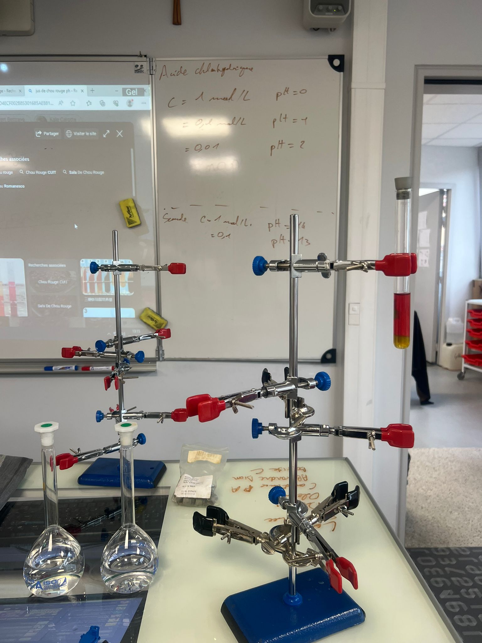 Avant les vacances, pour travailler de façon plus ludique en cette période de DTL, les élèves de Mme Lerais et M Fiuza ont pu profiter en commun d’un TP de Noël ! Le but était de fabriquer un arbre de Noël de chimie en tubes à essai… colorés par du jus de choux rouge à différents PH . Un bon moyen de réviser tout en s’amusant… et en musique !