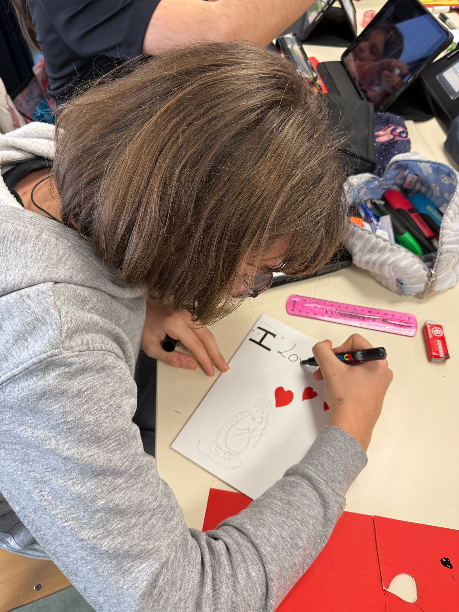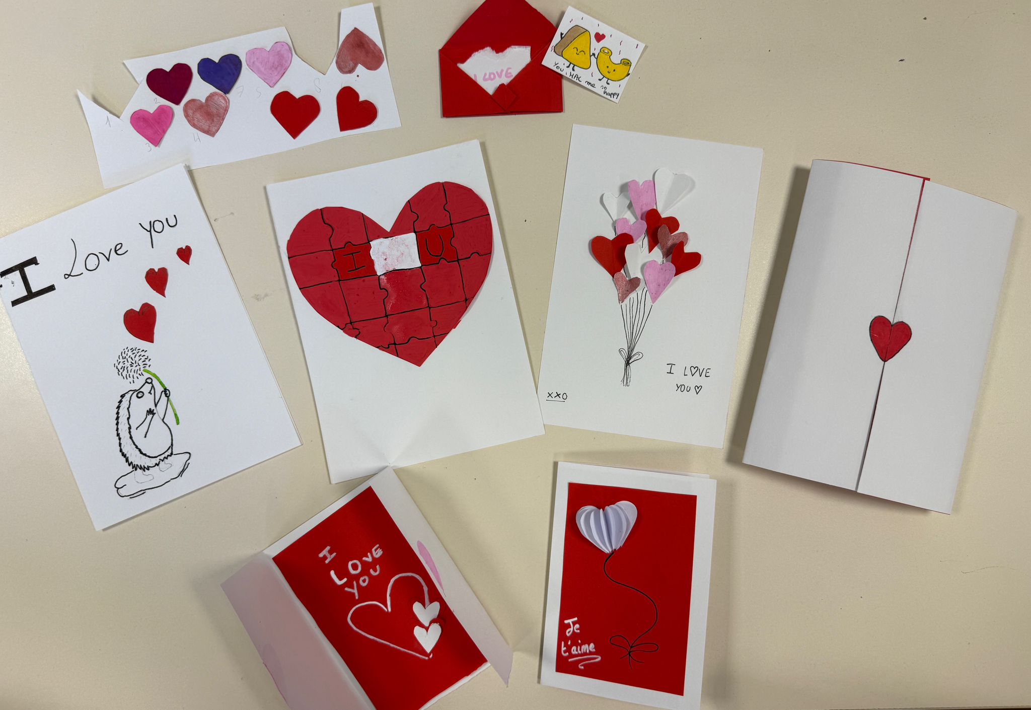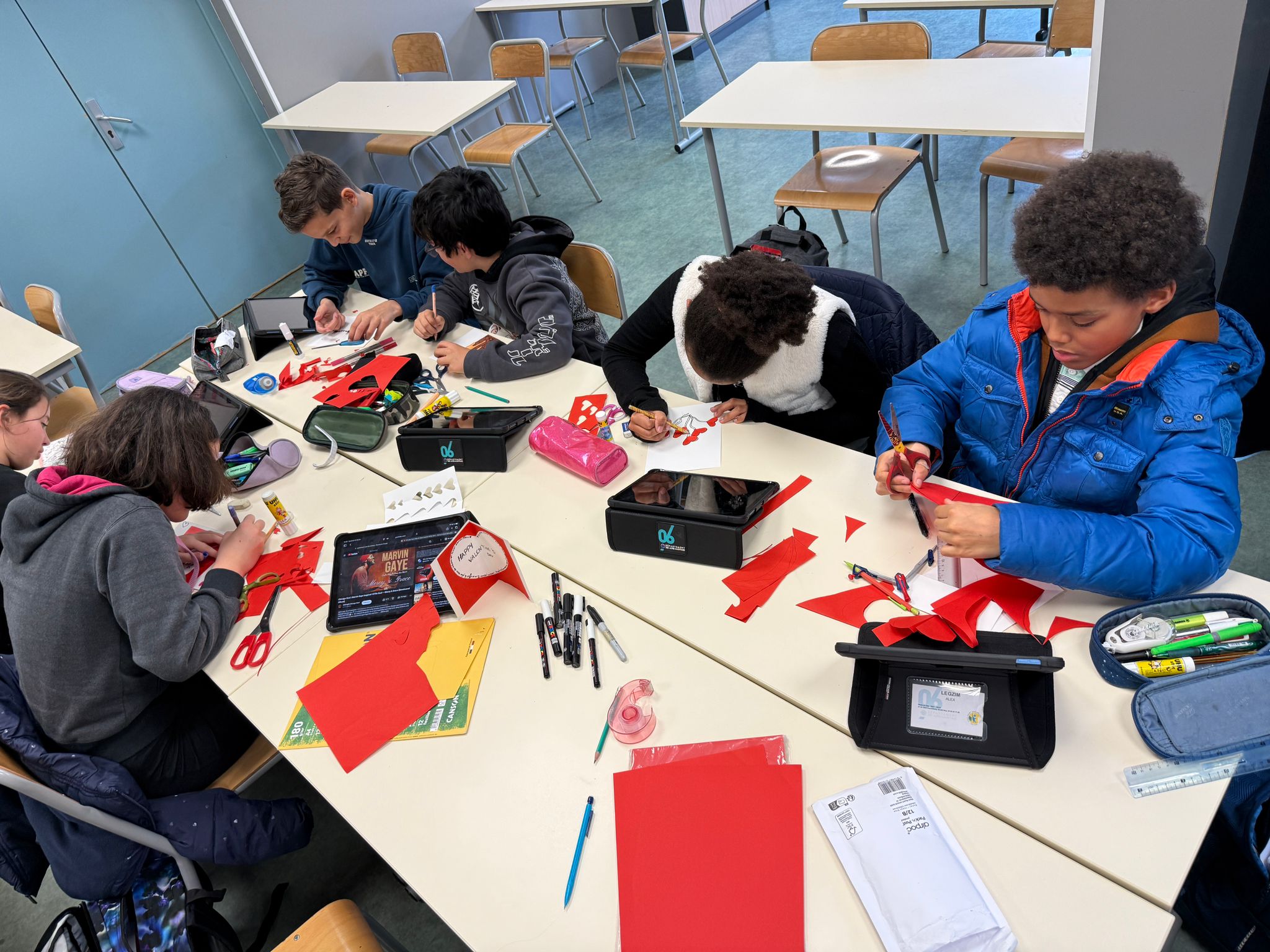 Les élèves du club jeux et activités manuelles en anglais ont réalisé des cartes pour la Saint Valentin. Un moment partagé tout en douceur.