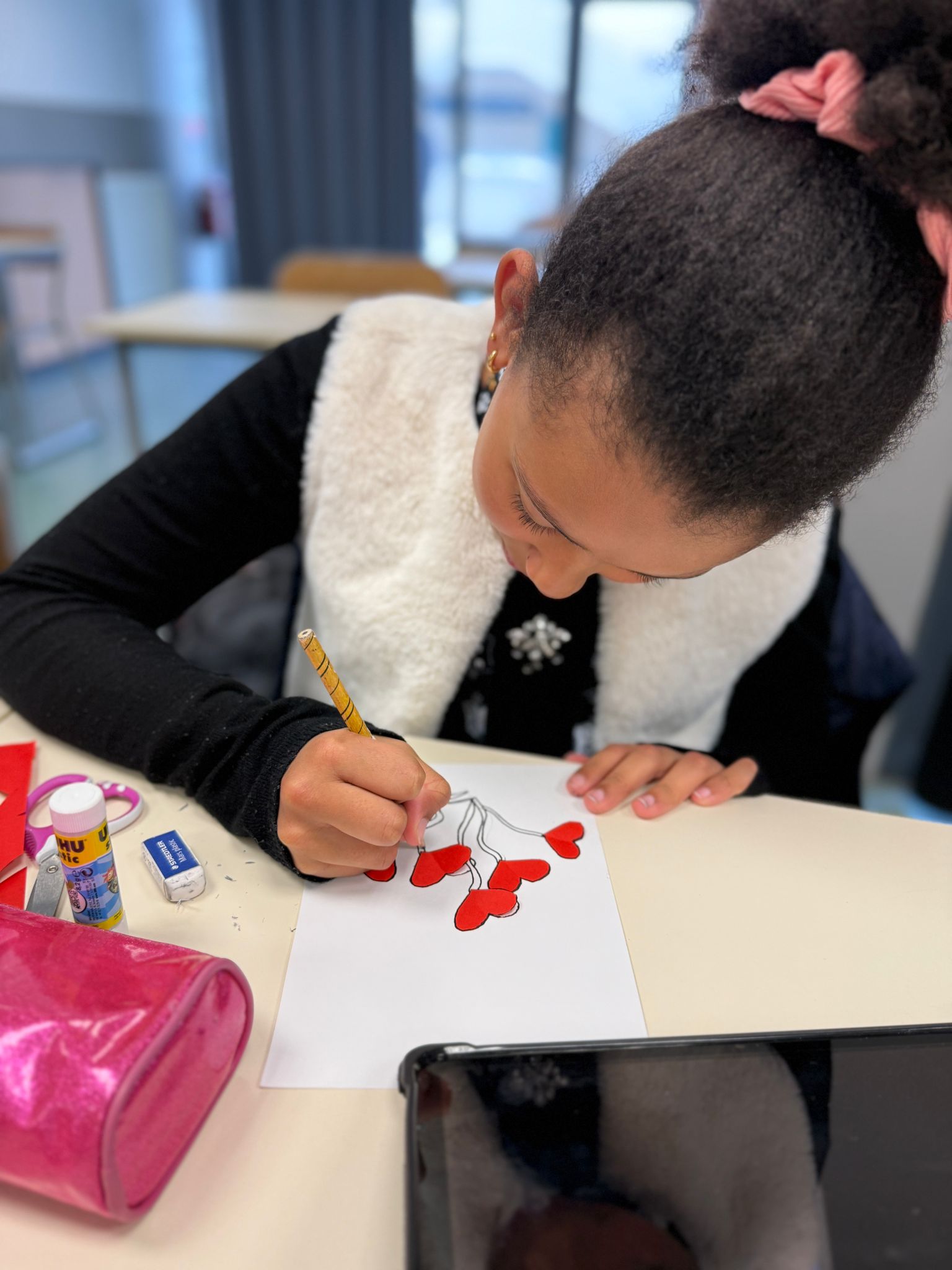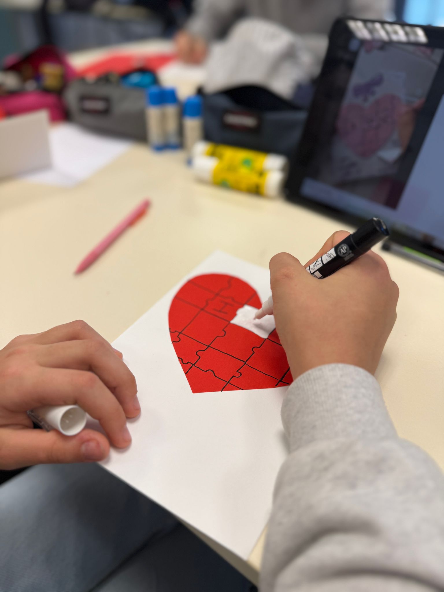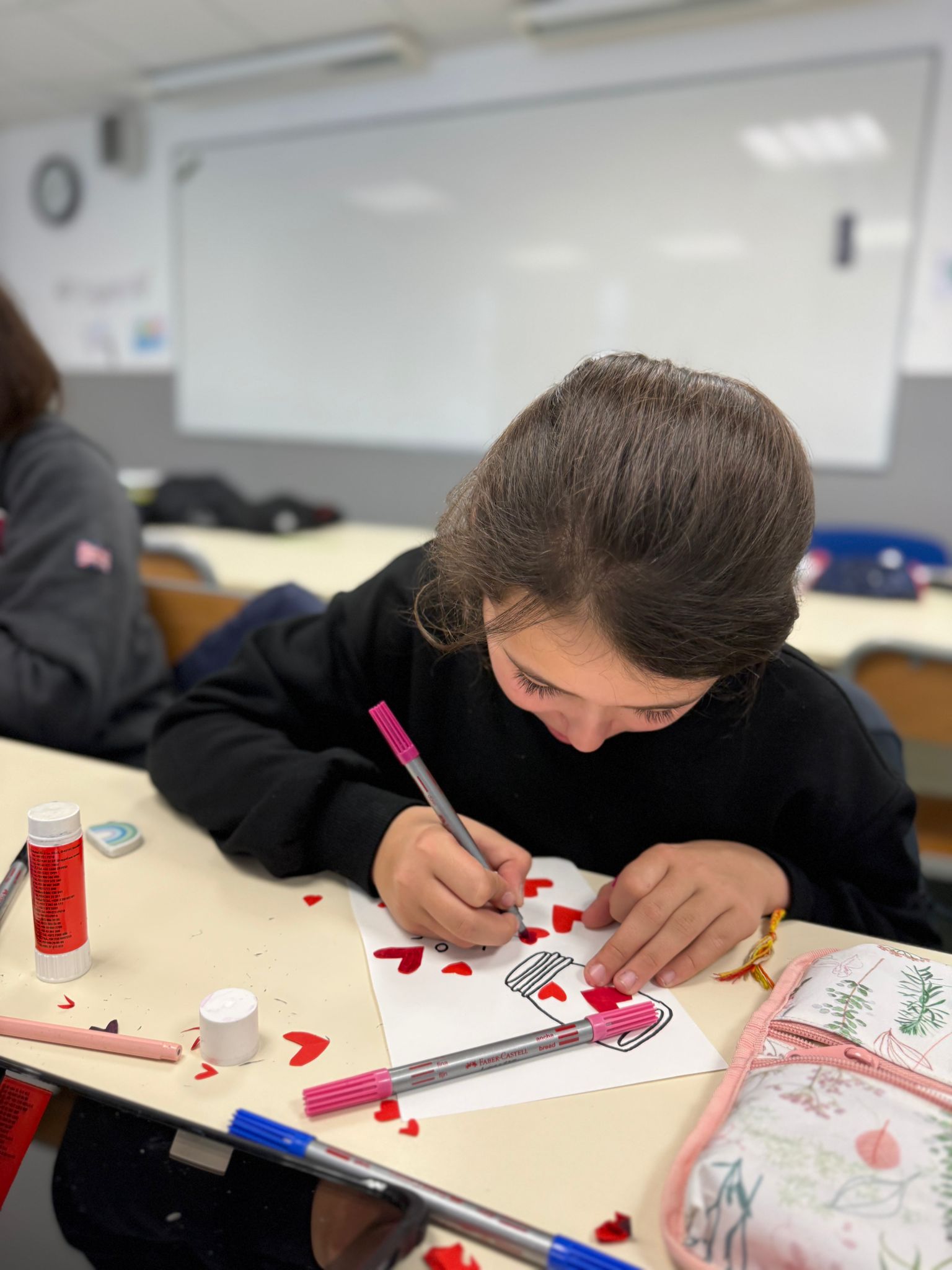 Les élèves du club jeux et activités manuelles en anglais ont réalisé des cartes pour la Saint Valentin. Un moment partagé tout en douceur.