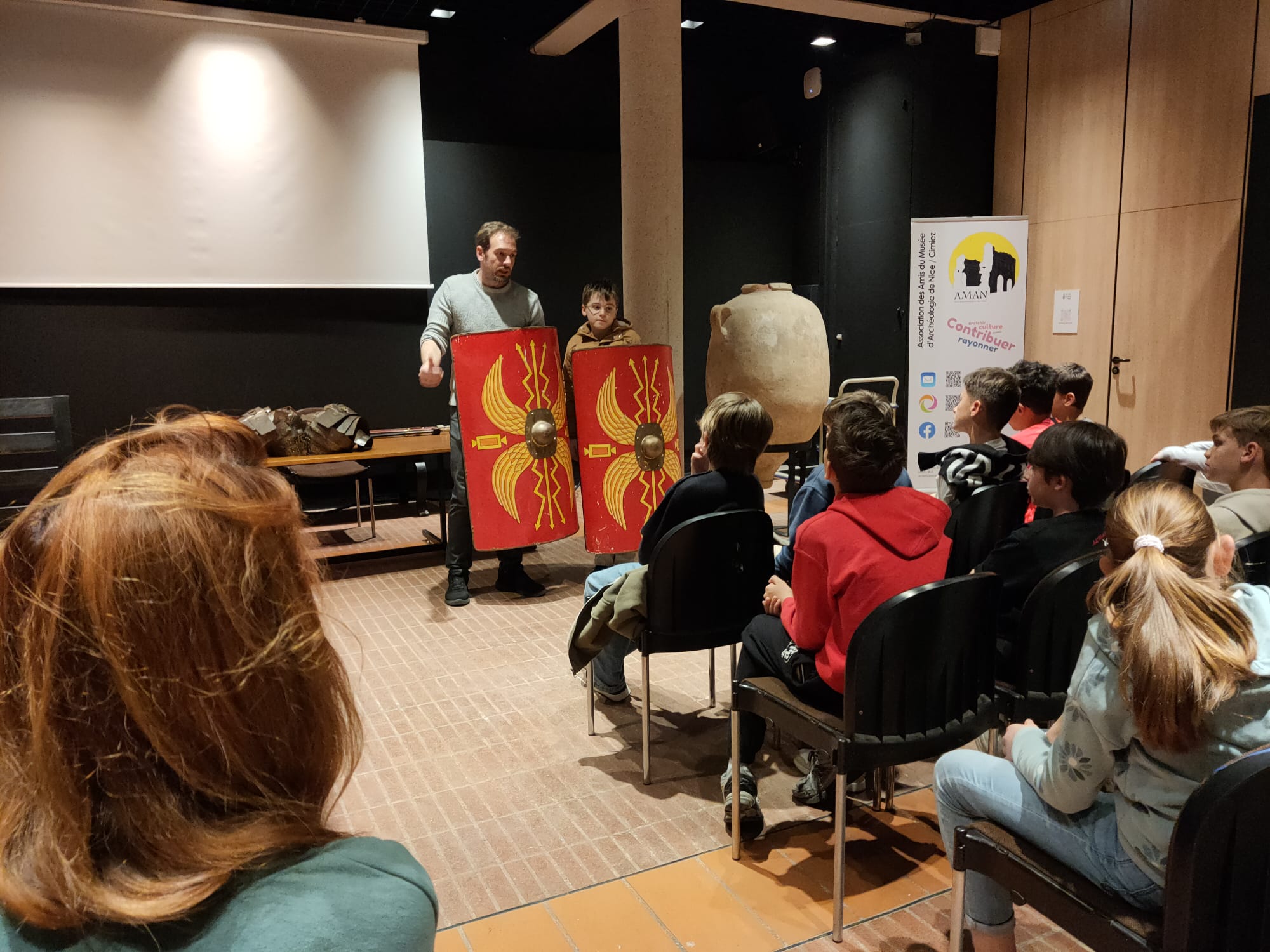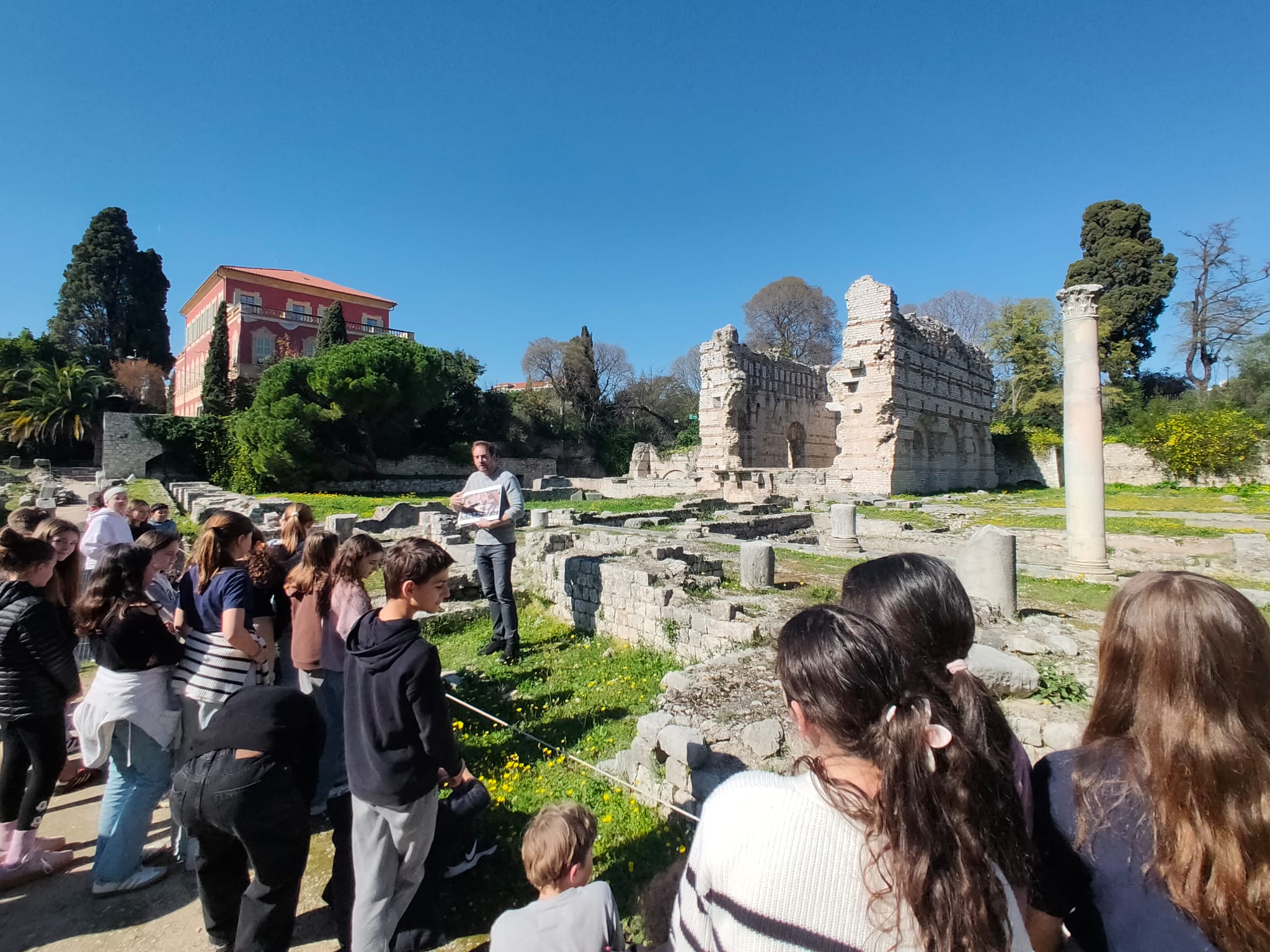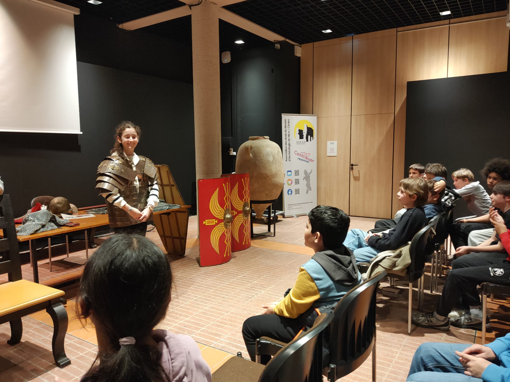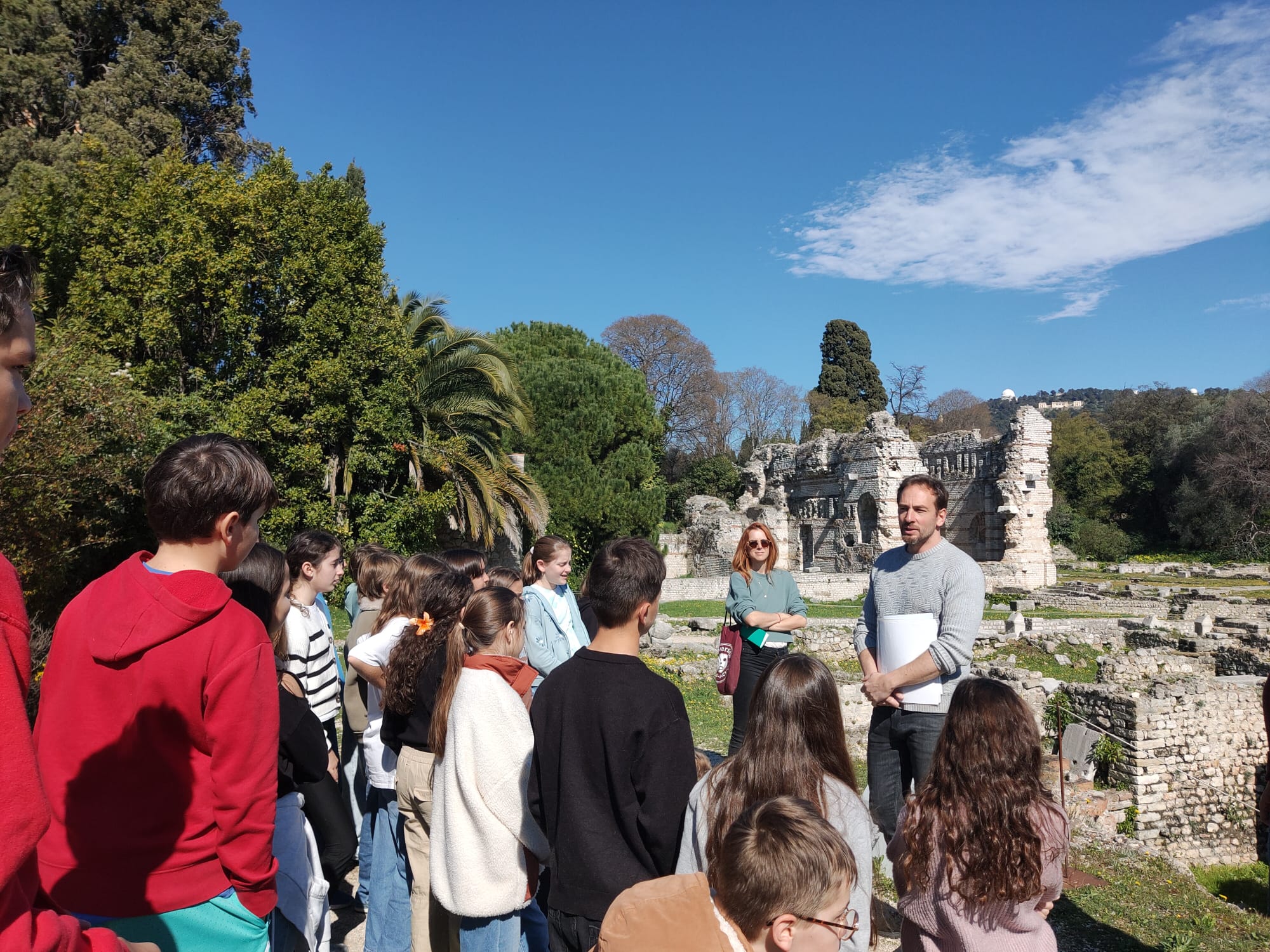 Lundi 16 mars, la classe de 6B a visité le site archéologique de l'antique cité romaine de Cemenelum. La cité de Cemenelum s’étendait sur au moins 20 hectares. Le site archéologique, d’une surface de 2,5 hectares, correspond principalement au quartier des thermes. La classe a ensuite participé à une activité consacrée à l'armée romaine avec présentation des reproductions d’équipements des soldats romains. Les élèves ont pu les manipuler et même les essayer !